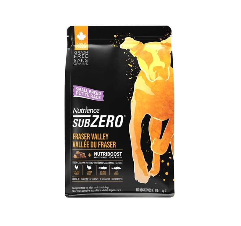 Nutrience SubZero Small Breed Fraser Valley está formulado para cumplir con los niveles nutricionales establecidos por los perfiles de nutrientes de alimentos para perros de la AAFCO para el mantenimiento.